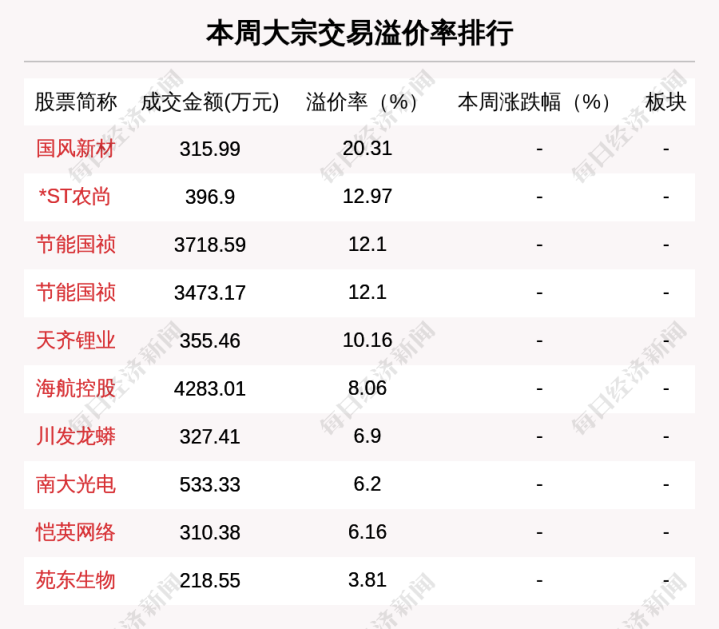 溢价交游方面,本周有5笔大批交游溢价率向上10%。