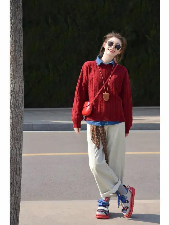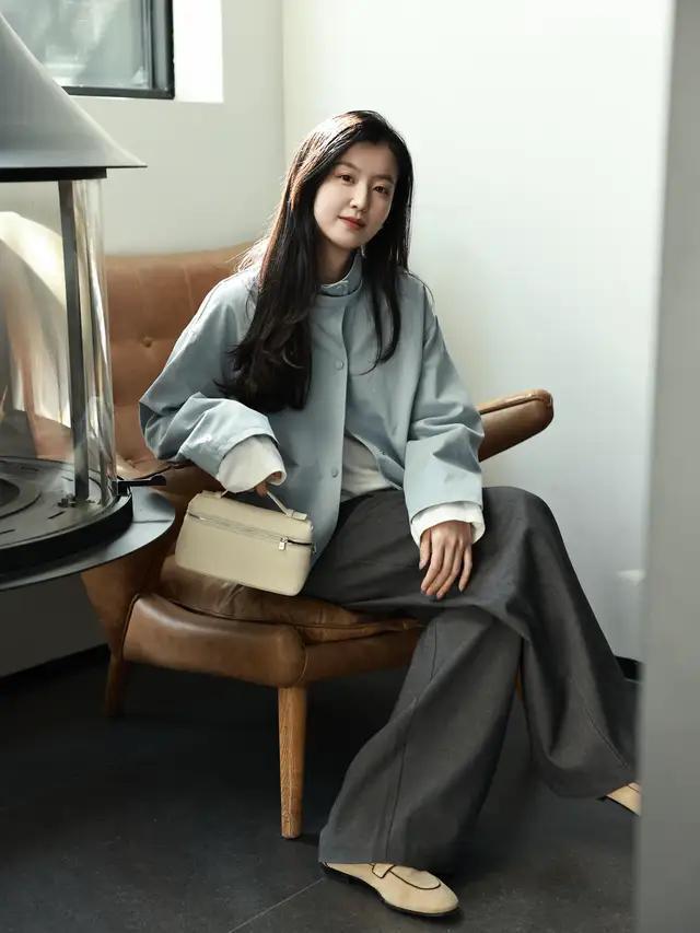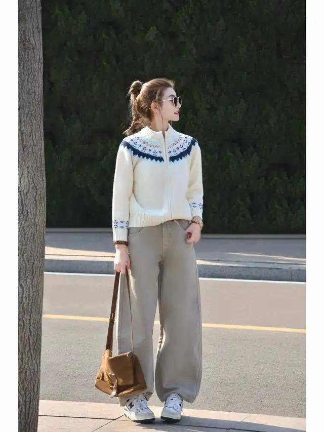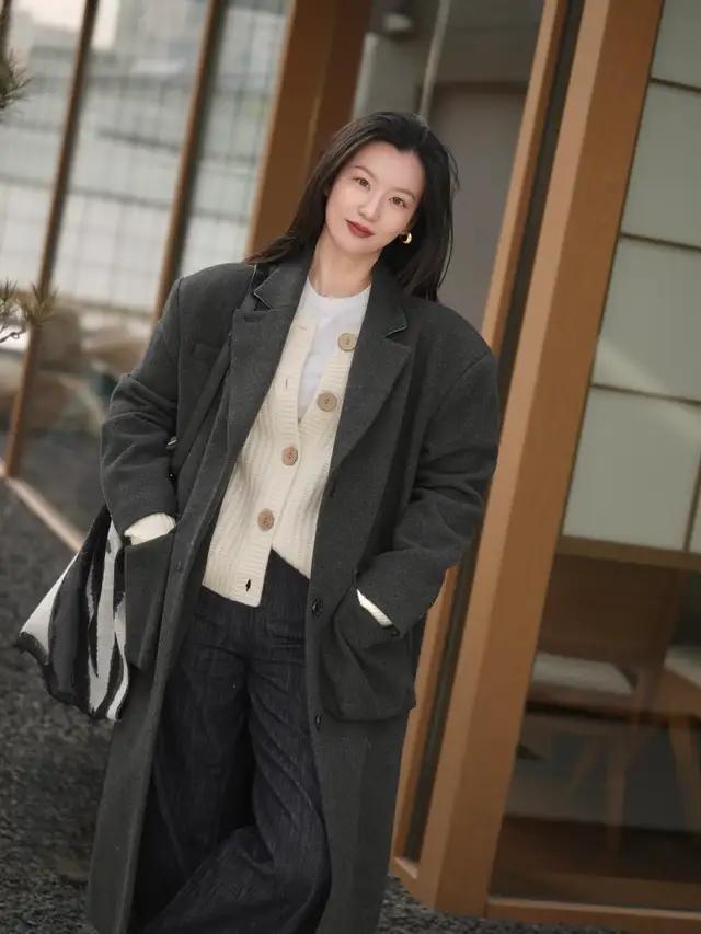 径直像上头这一套打扮一样,用燕麦色的翻领西服,内搭棕色的诚恳毛衣,兼顾了暖意和好意思感。谁见了皆会夸你一声真漂亮。