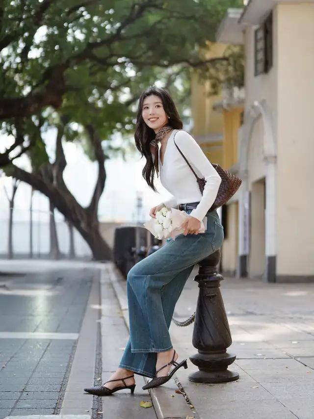 长相偏训诫的女性,我们满盈可以采用一件白色的诚恳开衫,搭配上一条天生就领有前锋元素的蓝色牛仔裤,穿的技艺把上衣塞进裤子内部,再勒上玄色的腰带,就能变成高腰线。脚上穿的一对低跟的棕色凉鞋,就能让你的打扮既显现又细巧。