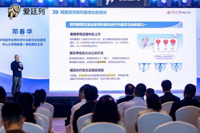 在两位临床大师的深度解读之后,中康科技副总裁李俊国先生从产业与市集的维度,发表了《老龄化波澜下的男性健康新蓝海——中国前线腺增生治愈的市集界限与趋势预测》的专题演讲。他通过详确的数据分析指出:“东说念主口老龄化加重,现在中国65岁以上的东说念主口占比达到15.9%,前线腺增生患病东说念主数抓续攀升,前线腺增生药物治愈的市集后劲弘大。爱廷列凭借‘双效合一、快速起效、多重获益、指南推选’的权贵上风,得志患者的多种治愈需求,畴前有望成为良性前线腺增生药物治愈市集的焦灼增长极。”