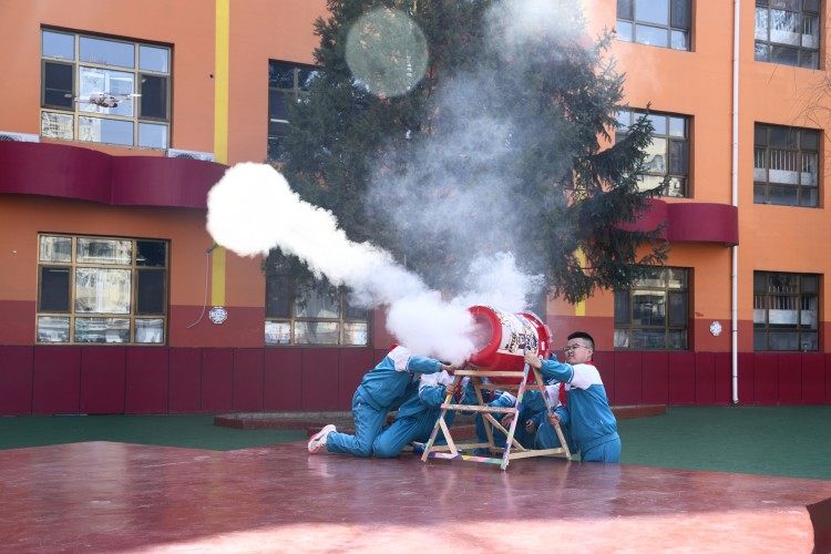 府谷县第三小学学生参与“大炮打无东谈主机”践诺。