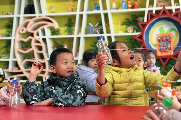 府谷县第六幼儿园组织学生进行手工制作。