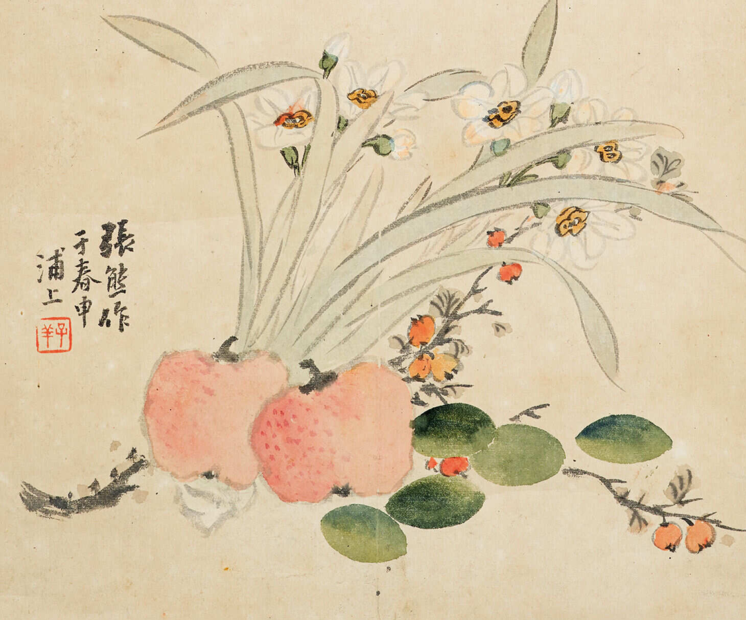 在技法层面,张熊的“勾、刷、点、染”四法变成私有的翰墨语法。如《海棠图》中,以胭脂红点染花瓣的“没骨”技法,既无间恽南田的没骨传统,又通过“叶下细筋”的勾画翻新——正面叶脉留白勾红,反面嫩绿染底勾红,这种对颜色与线条的解构重组,恰似晚清文东谈主濒临西学东渐时的文化心焦。其用色艳而不俗的诀要,在于将矿物形势与植物色分层渲染,使画面既具视觉冲击力,又守护文东谈主画的简约作风,暗合那时“中学为体,西学为用”的文化政策。