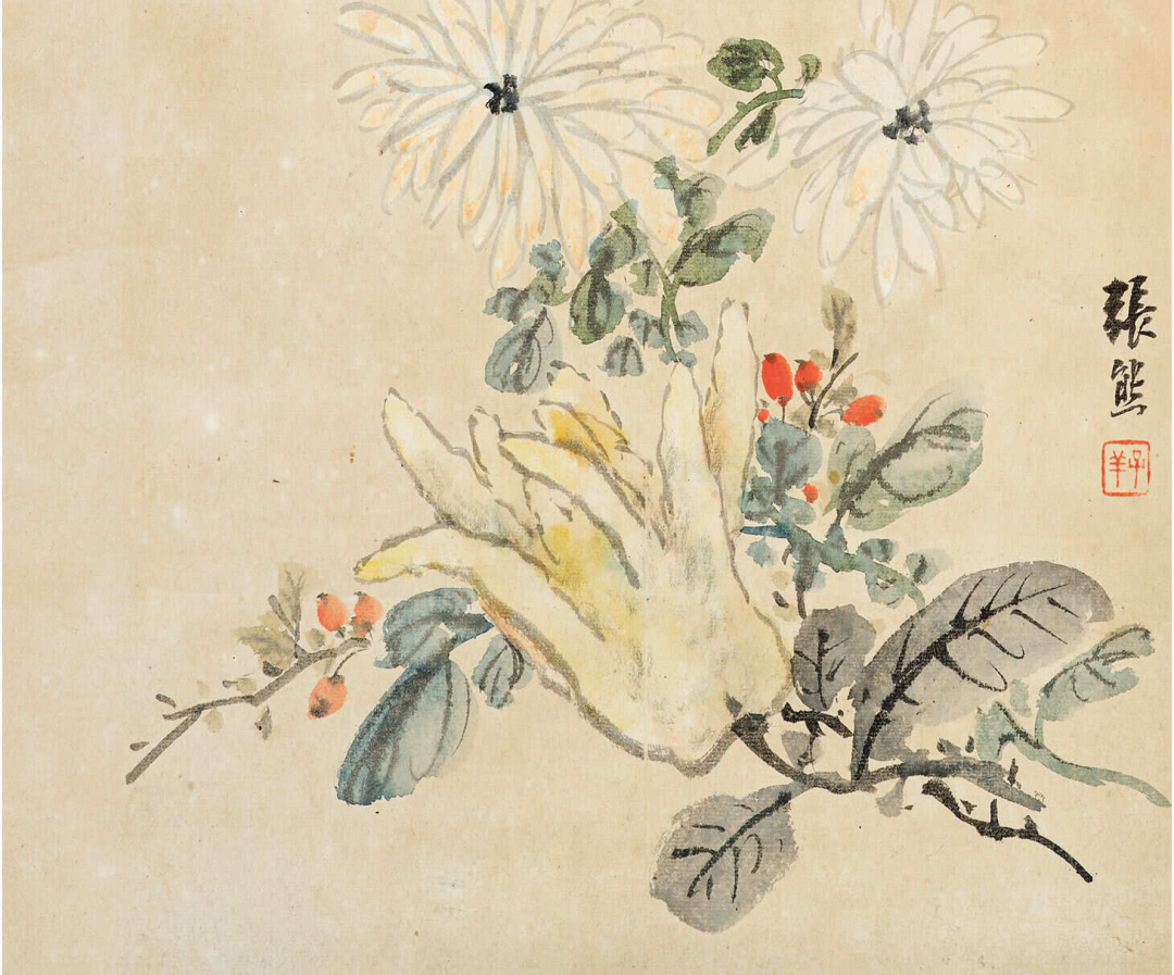 册页的构图政策更具深意。张熊通过“主次疏密”的辩证布局,将传统花鸟画的“折枝”范式升沉为当代视觉谈话。如某帧中,一枝斜出的秋海棠占据画面中心,布景以淡墨虚化,这种“以少胜多”的留白处置,既是对八大山东谈主“孤傲好意思学”的问候,又暗含对齐市化进度中当然消散的挽歌。更值得详确的是,册页中屡次出现“双花并置”的构图,如并头莲、双生菊,这种对“偶数”的偏疼,好像是对传统家眷伦理的当代转译——在个体相识醒觉的时期,通过艺术重构集体追念。