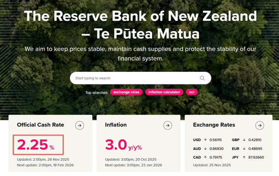 新西兰的降息设施仍在连接。11月26日,新西兰联储文告将官方现款利率(OCR)下调25个基点至2.25%。