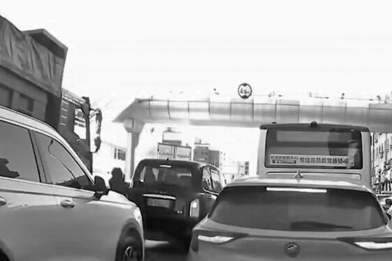 走下天桥,记者朝市集标的走去。不少采购完的市民,或刚下公交车的乘客,为“少走几步路”,便斜穿过多排车谈,随后紧贴车谈护栏前行,距离约二百米远方设有斑马线。为此,最里侧车谈的直行天真车不得不压线或借谈外侧车谈,以免发生剐蹭事故。